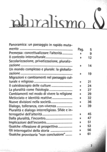La collana”Parole delle fedi” fornisce chiavi di lettura del mutamento religioso in atto, redigendo le voci di un sempre più necessario vocabolario interreligioso, scegliendo fra le parole-chiave dell’universo del sacro. L’odierno processo di interculturalità non può non fare i conti col caso serio delle religioni. “Pluralismo”: una parola che apre cruciali interrogativi nelle grandi religioni: speranze e difficoltà di un mondo al plurale. Una risposta dalle grandi religioni.